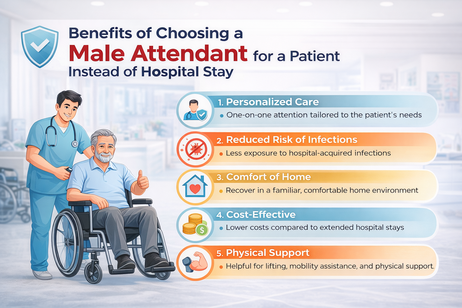 What are the Benefits of choosing a Male Attendant for a patient instead of a hospital stay?